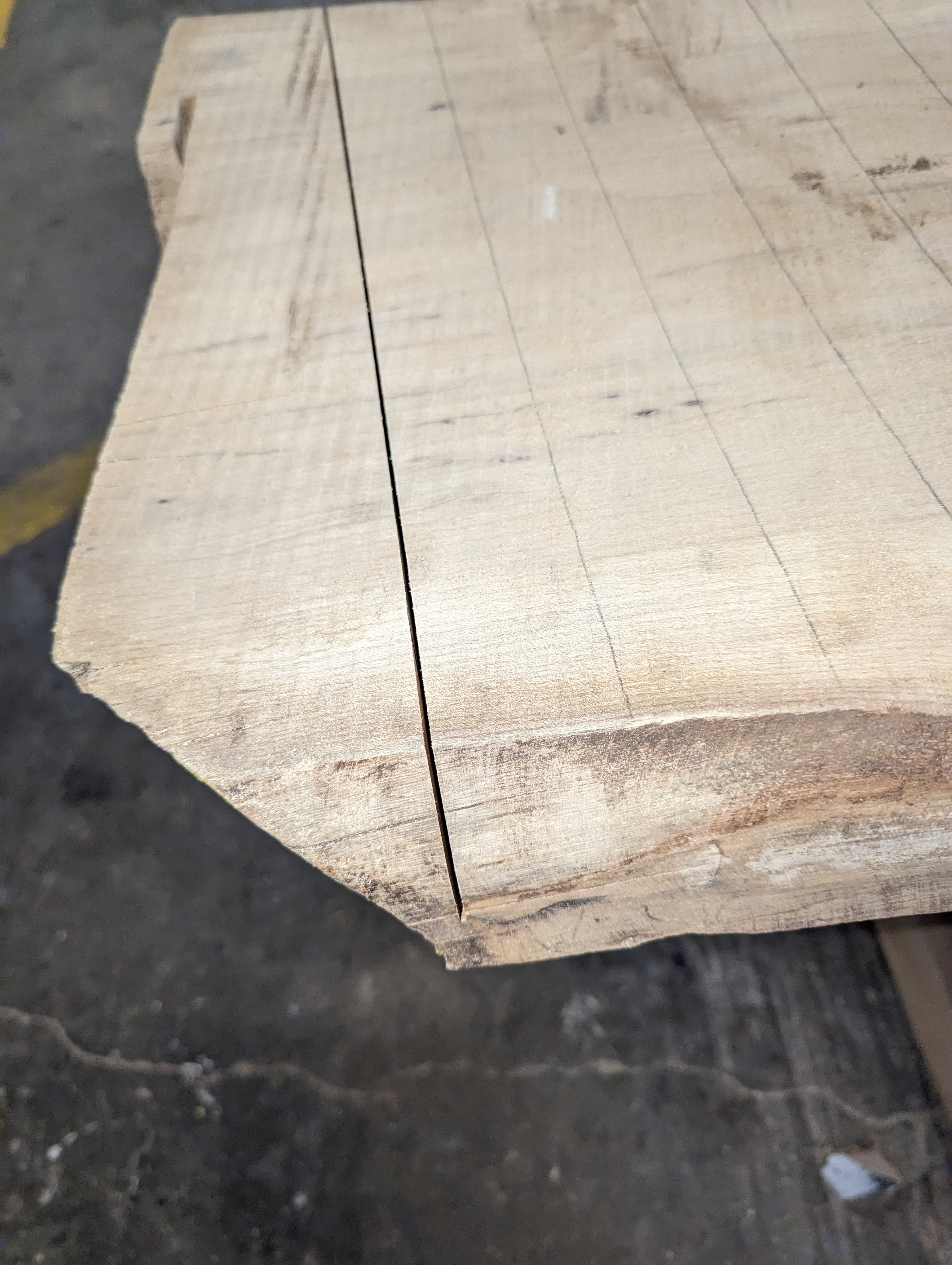 Using the track saw (sorry, no pictures - not sure what happened), I squared off the end and then ripped the side. The waste bit went to a guy who makes spoons and handles, so hopefully some nice bits come from that.